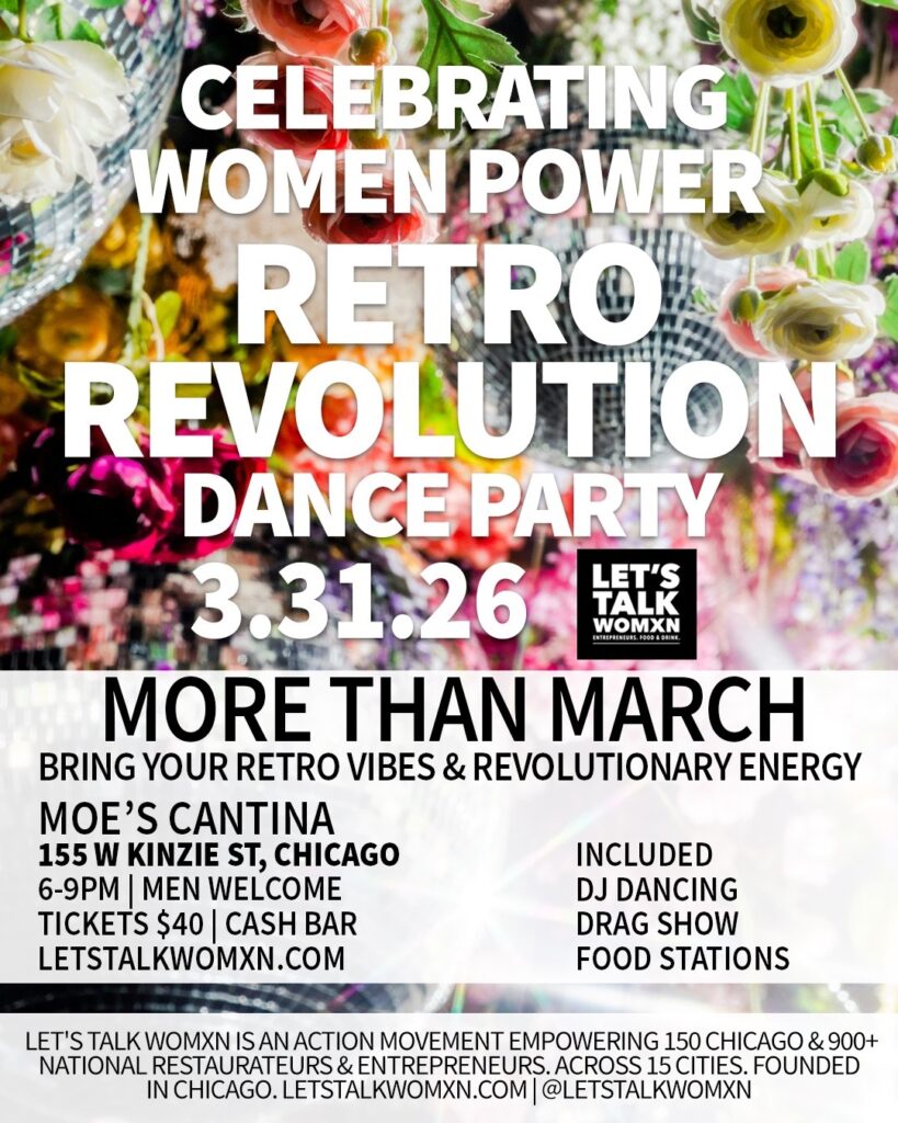 Get Tickets Join Let’s Talk Womxn on March 31 from 6–9 PM at Moe’s Cantina River North as we close Women’s History Month with our Retro Revolution Dance Party. Spend the evening in an unabashed celebration of women empowering women. By 150 of Chicago’s Let’s Talk Womxn leading food and beverage entrepreneurs, this celebration is…